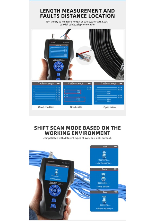 Noyafa NF8209 Çok Fonksiyonlu Poe ve Kablo Test Cihazı